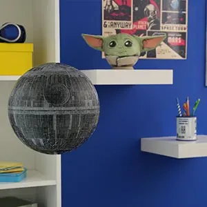 Denna pusselboll består av 540 robusta pusselbitar i plast och inkluderar en upphängningsanordning, så att den berömda dödsstjärnan kan sväva i ditt hem i framtiden.