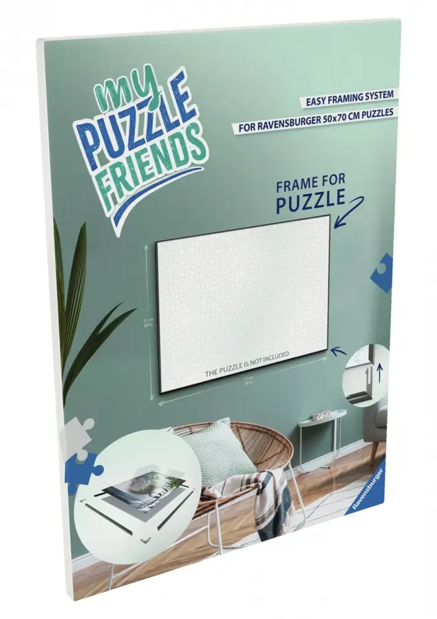 Ramen är 51 x 71 cm och rymmer ett 1000-bitars motiv av standardstorlek (50 x 70 cm). Allt du behöver ingår. Ramen är i svart plast.