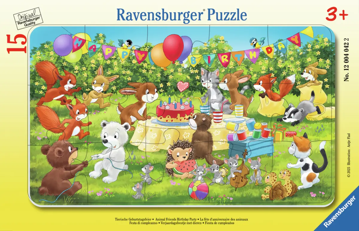 I skogen har djuren samlats på ängen, det är nämligen Kanins födelsedagskalas idag! De har pyntat fint med ballonger och flaggspel, mössen spelar musik, man leker roliga lekar och dansar. Bordet är dukat med saft och en stor tårta och Kanin ska precis blåsa ut ljusen. Grattis!!!