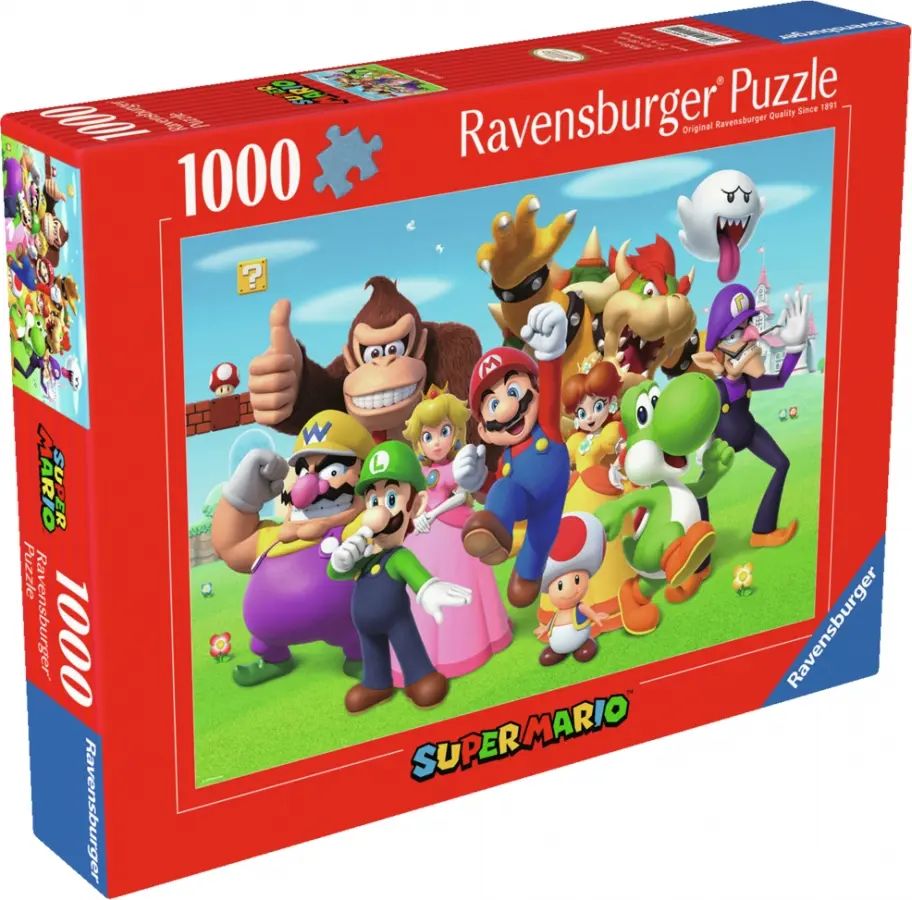 En av världens mest kända spelserier i ett färgglatt pusselmotiv med Mario och diverse karaktärer från Svampriket.