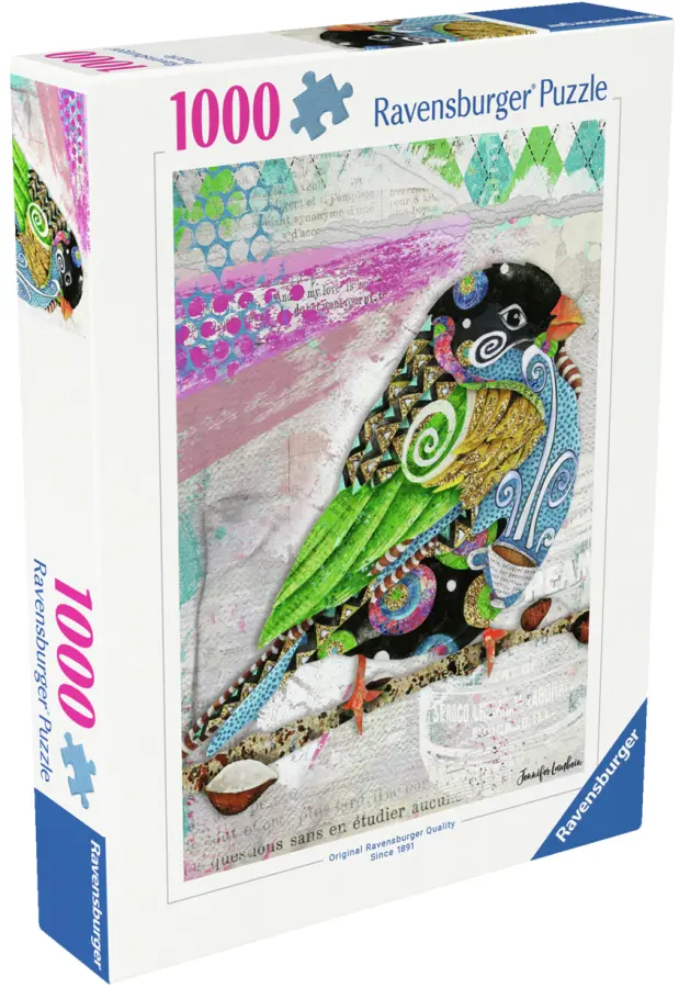 Ett fint kollage av en fågel, skapat av illustratören Jennifer Lambein.