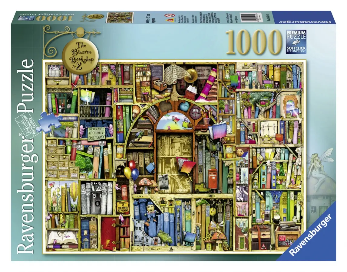 En magisk bokhylla av fantasykonstnären Colin Thompson. Här står böckerna tätt bland magiska apparater och sagoväsen. Ett motiv med massor av fina detaljer att upptäcka medan du lägger ditt pussel.