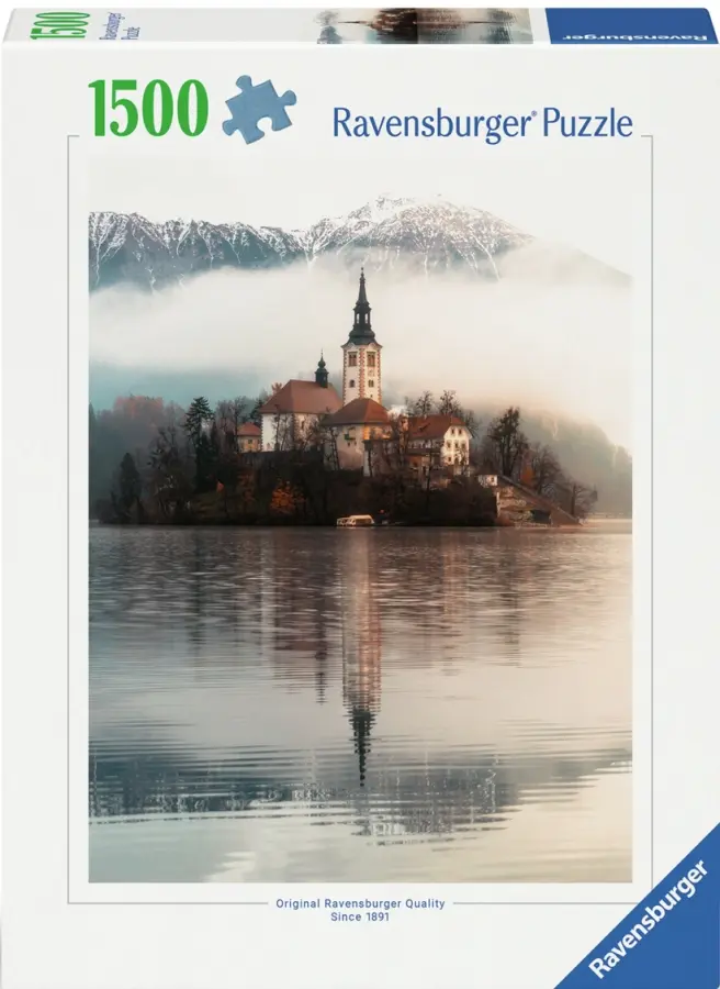 I detta motiv ser vi Bled och S. Maria Assunta en gråmulen och vindstilla dag. I bakgrunden sträcker sig alperna ovan molntäcket.