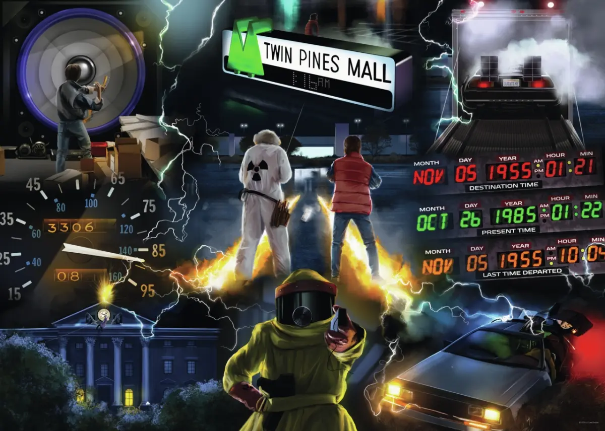 Motiv från Universal Studios 80-tals klassiker "Tillbaka till framtiden". Vi ser klipp som känns igen från filmen och självklart även den kultförklarade bilen, en DeLorean DMC-12, som fick otrolig uppmärksamhet i och med denna älskade Sci-Fi film.