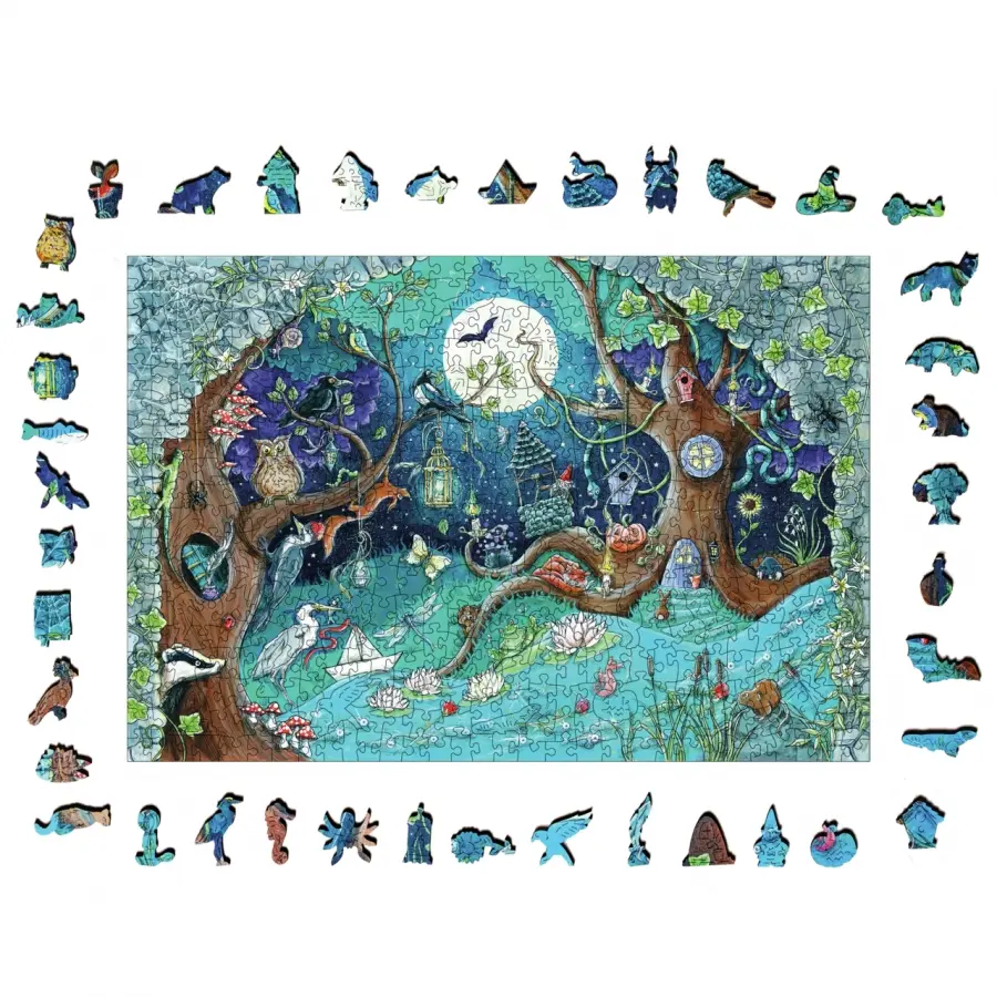 Det här pusslet i trä ger dig nya pusselutmaningar på ett stimulerande och lekfullt sätt! Pusselbitarna är utskurna i trä och bitarna är unika, en del av bitarna har formen av olika djur och växter.