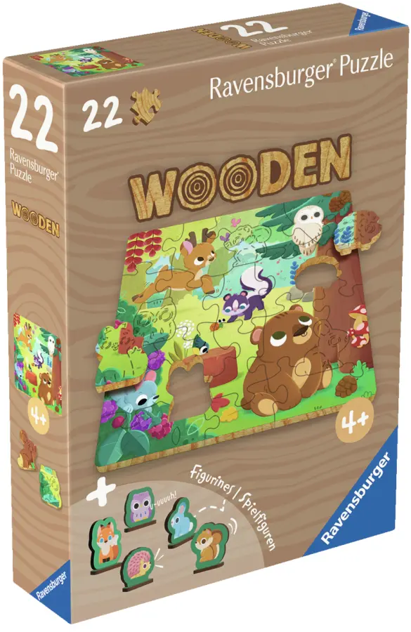 Det här pusslet i trä ger dig nya pusselutmaningar på ett stimulerande och lekfullt sätt! Pusselbitarna är utskurna i trä och bitarna är unika. En del av bitarna har formen av olika djur och små ställ ingår till dem så att du också kan leka med dem.