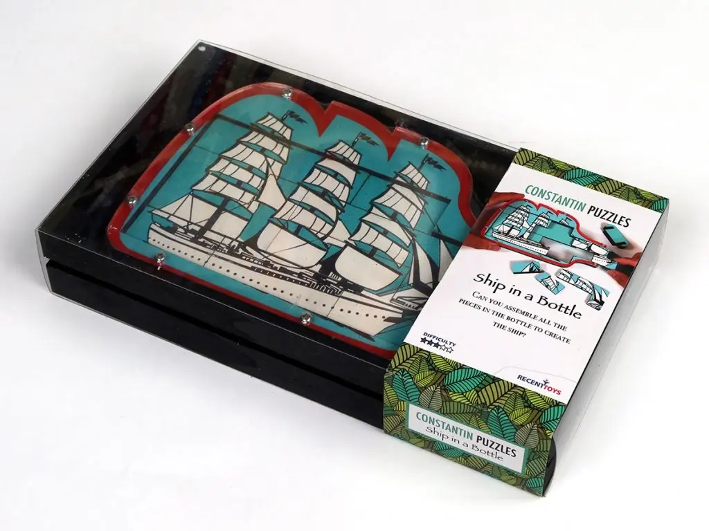 Slutledningsförmåga och fingerfärdighet! Kan du sätta ihop alla bitar i flaskan för att skapa skeppet?