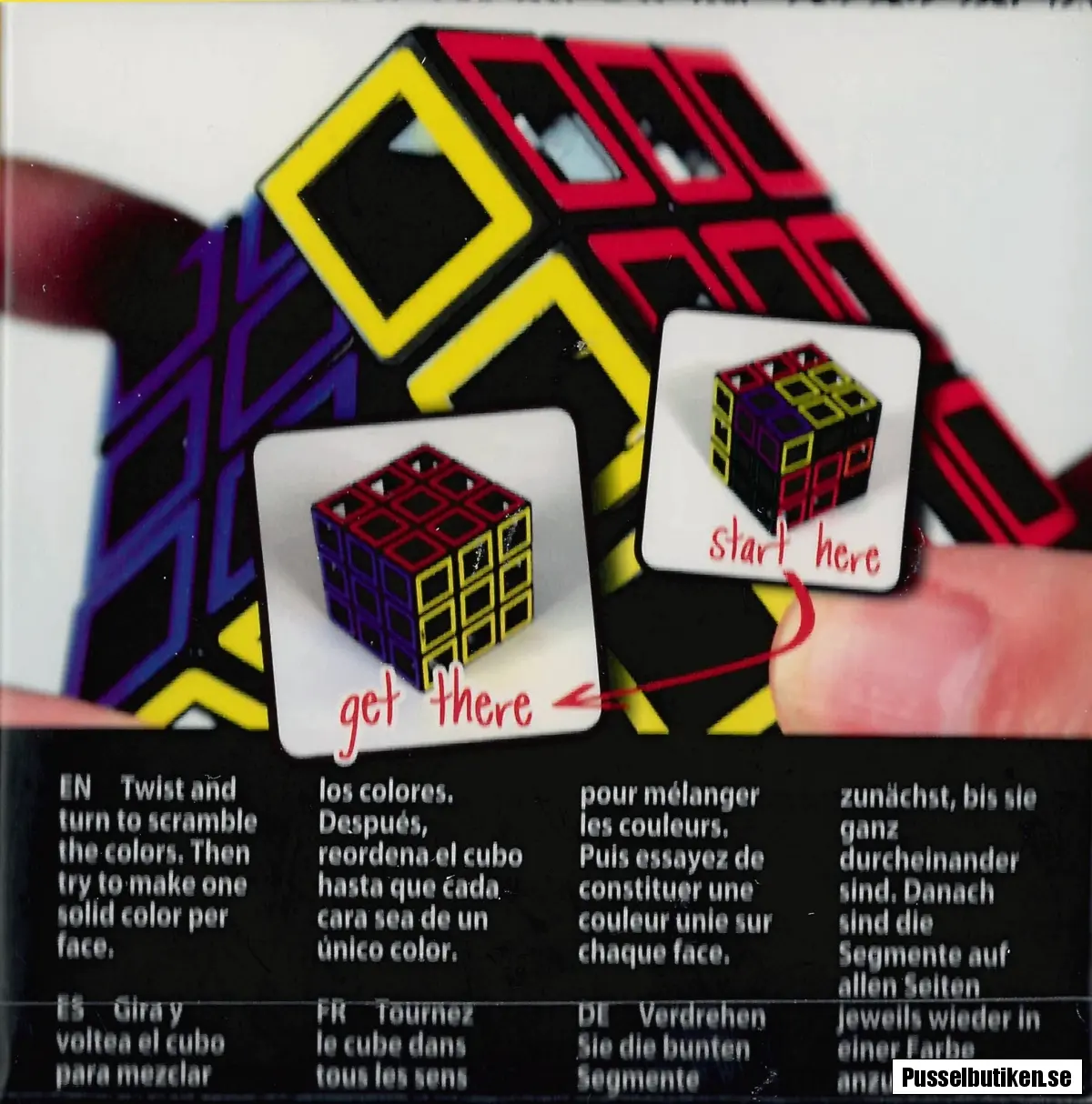 Vrid och vänd för att blanda färgerna i kuben. Sedan är den stora utmaningen att få en färg per sida igen!