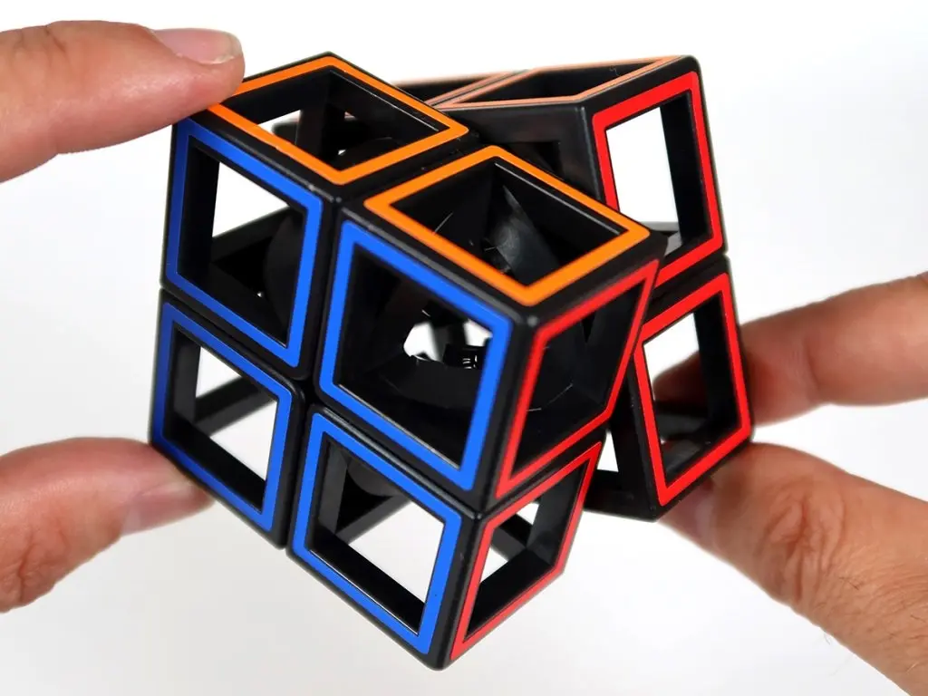 Vrid och vänd för att blanda färgerna i kuben. Sedan är den stora utmaningen att få en färg per sida igen!