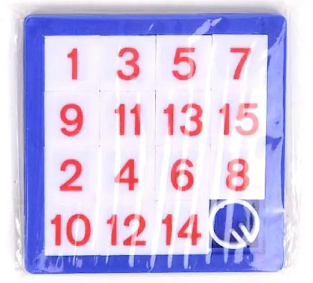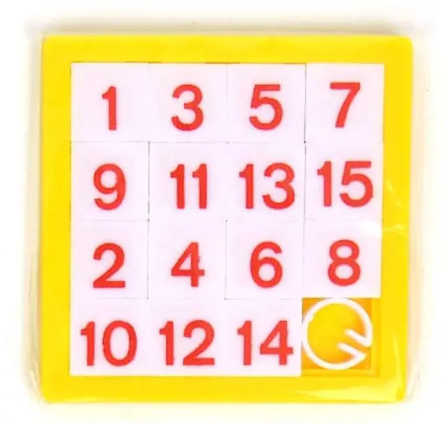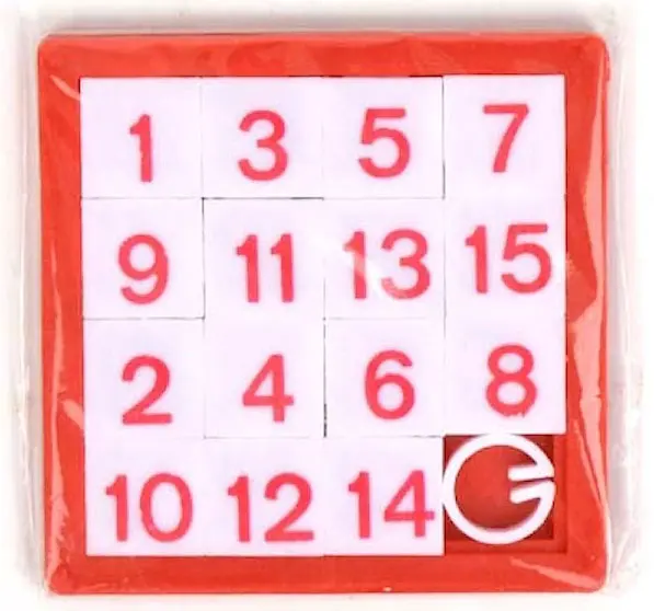Ett klassiskt nummerpussel där det gäller att lyckas skjuta brickorna så att siffrorna hamnar på sin rätta plats (från 1 till 15).
