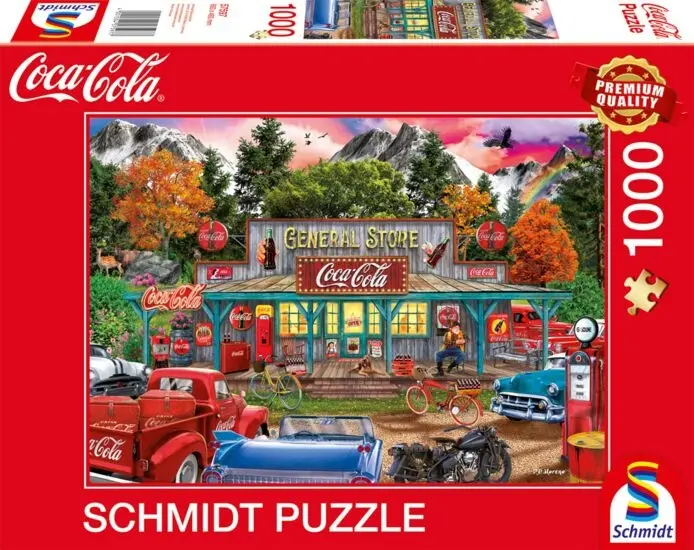 En Coca-Cola butik på landsbygden i en svunnen tid. Besökarna har tagit sig dit i sina snygga amerikanare, på cykel och motorcykel. Runtomkring butiken syns ett skogslandskap i höstfärger och bergstoppar med snö som sträcker sig mot en rosaskimrande himmel. Verkar det inte till och med som att skogens djur är sugna på läsk?