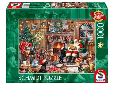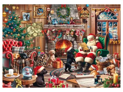 Ett pusselmotiv som verkligen lever upp till sitt namn och skänker mysig Julstämning. Tomten sitter i en stor grön fåtölj och läser brev från snälla barn. Rummet är vackert julpyntat, en brasa brinner i den öppna spisen och på spiselkransen hänger julstrumpor på rad. Till sällskap har Tomten ett gäng söta valpar som gärna hjälper till med både brev och Julklappar, fast några verkar ha blivit lite trötta och tar sig en välbehövlig lur.