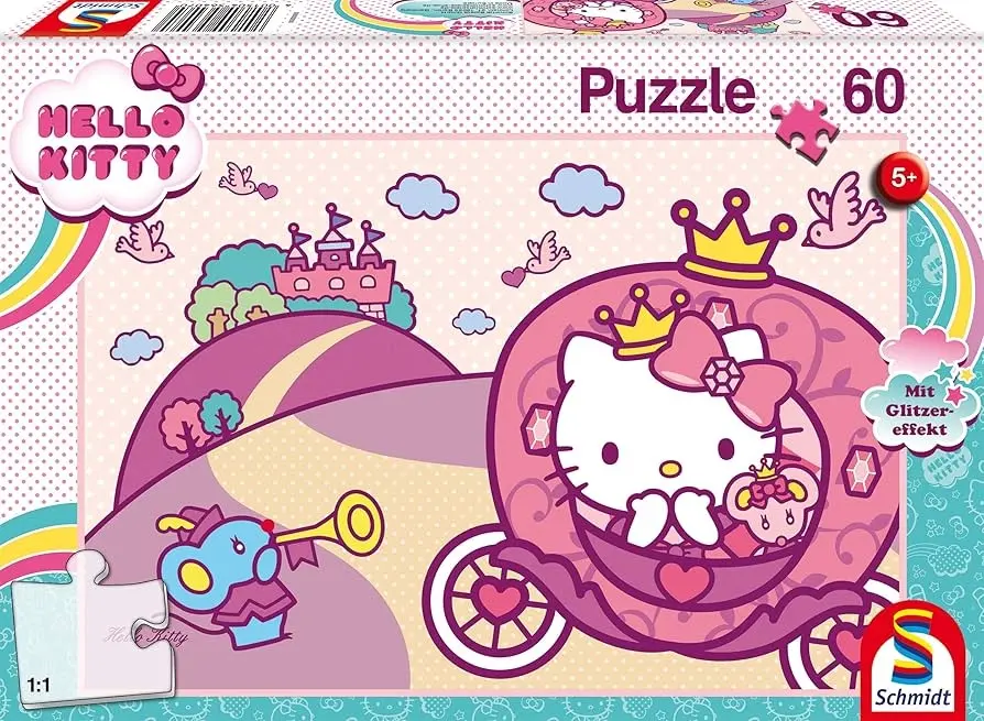 Motiv av den populära tecknade huvudkaraktären Kitty i "Hello Kitty". Idag är Kitty prinsessa. Hon färdas i en rosa vagn med prinsesskrona på huvudet och sin vän musen, som också har fått en krona dagen till ära, följer också med. De är på väg längs en landsväg som leder dem fram till ett slott.