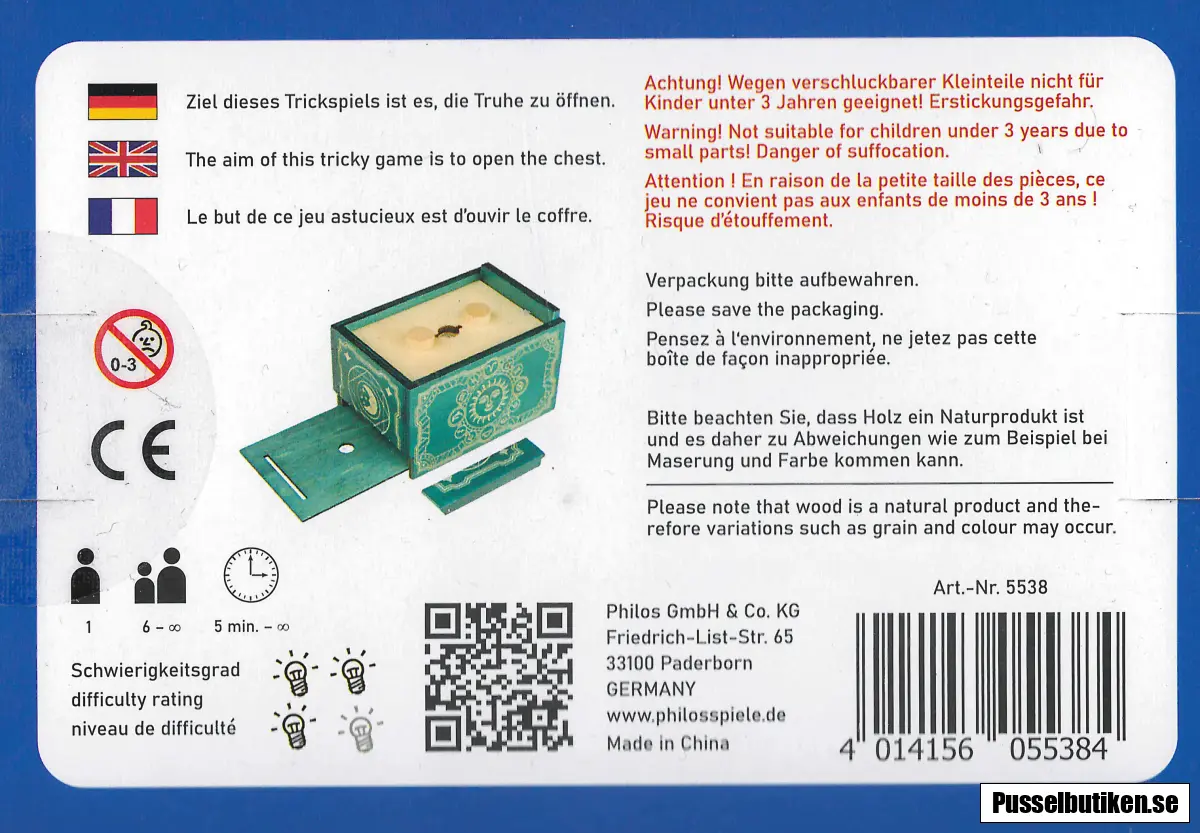 Vid en första blick kanske detta ser ut som en vanlig ask, men inuti gömmer sig ett hemligt fack. För att komma åt facket behöver man lösa pusslet.