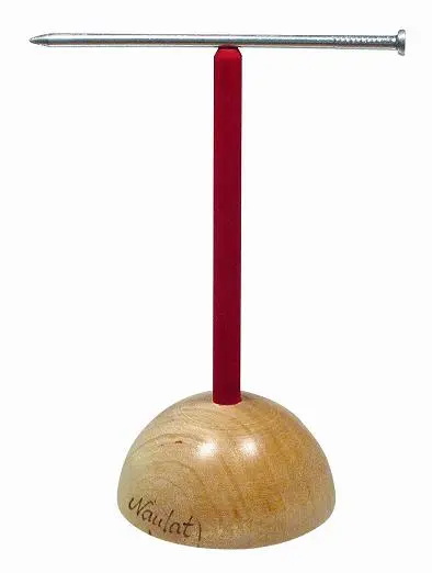 Placera träpinnen i hålet. Balansera sedan de sex spikarna på träpinnen!