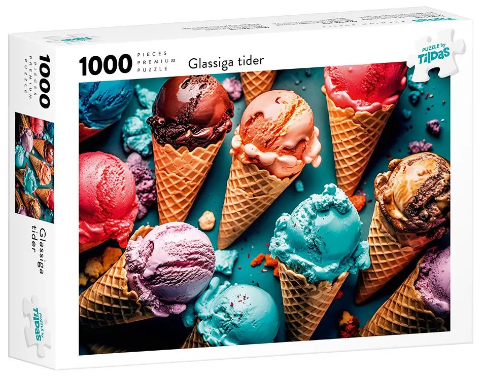 Ett smarrigt kollage av kulglassar i glasstrutar, snyggt arrangerade mot en turkos bakgrund. Nu gäller det att hugga in innan de smälter, vilken glass tycker du ser godast ut?