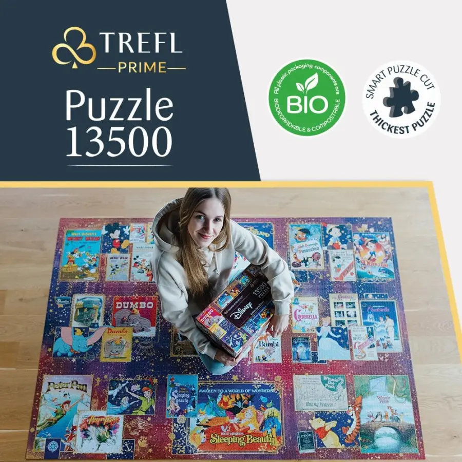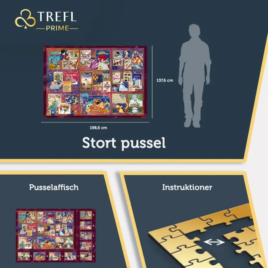 Det här mäktiga pusslet är på hela 13500 bitar och blir nästan två meter brett och 1,5 meter högt. Så det gäller att ha både plats där hemma och ett stort uns pusseltålamod! I pusselkartongen får du 9 påsar (märkta A-I) med 1500-bitar i varje påse. Varje pussel kan sättas ihop för sig, för att slutligen monteras ihop till ett stort pusselmotiv. Instruktioner och en poster av motivet ingår också.