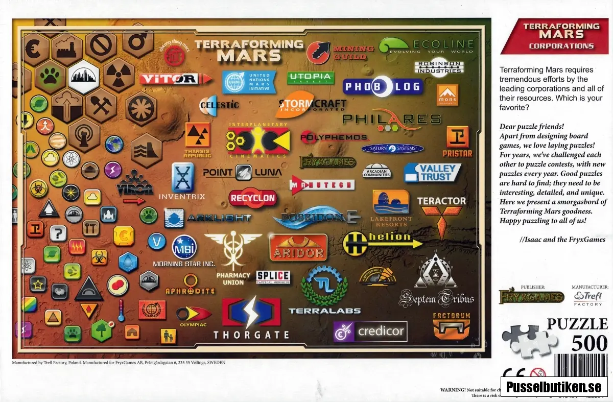 De ledande företagsloggorna ur spelet Terraforming Mars i pusselform!