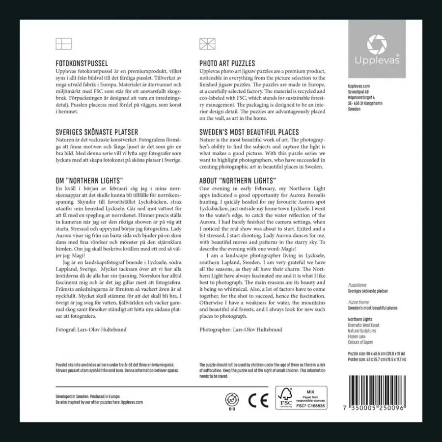 Upplevas vill i den här pusselserien höja fotografer som skapat fotokonst av olika platser i det vackra svenska landskapet. Speciellt fokus ligger på den naturliga belysningen och rätt motiv. Affisch medföljer.