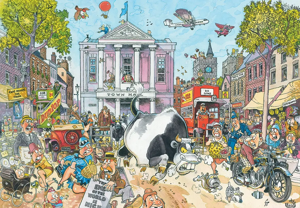 Men en av tjurarna har blivit lite rastlös och brutit sig loss från hägnet och paniken bryter ut. Hur skulle egentligen den här bilden kunna se ut idag? I detta Destiny-motiv behöver du använda din fantasi och pussla marknaden i modern tappning.