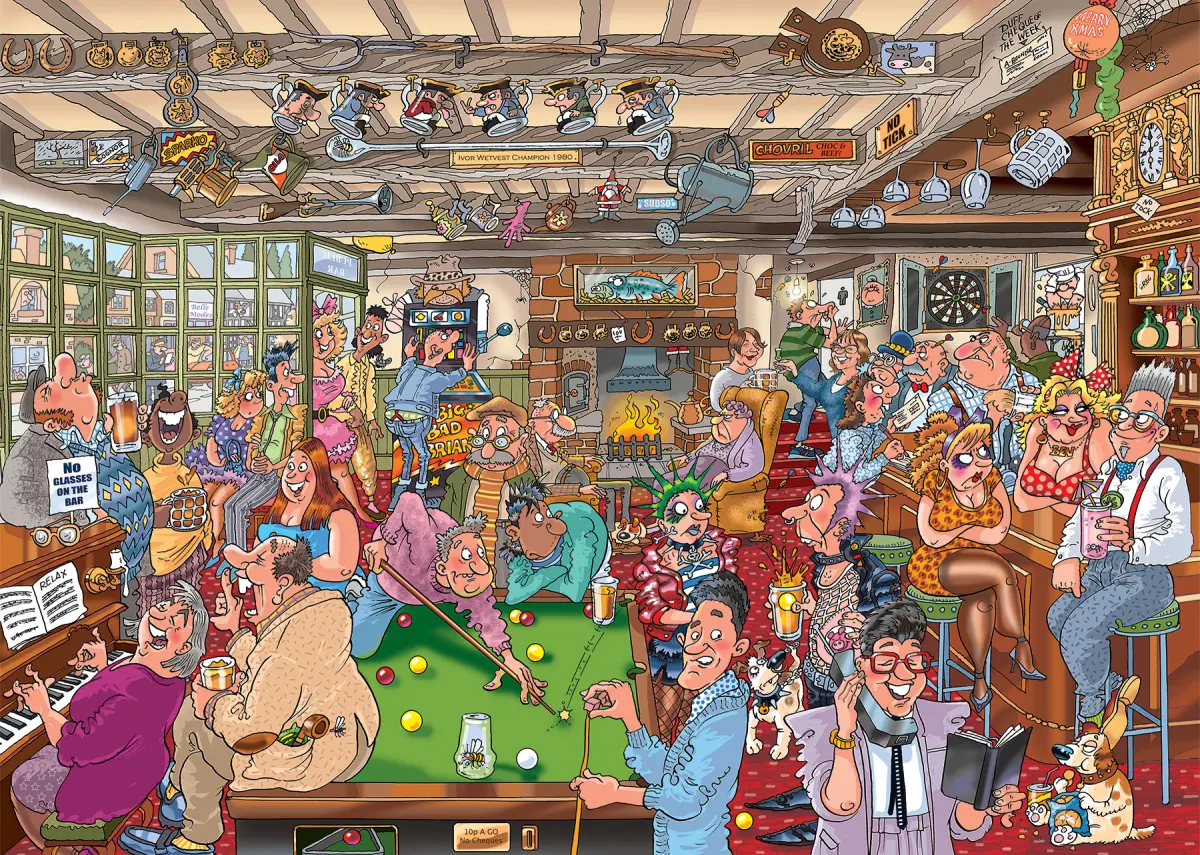 Kommer du ihåg när du kunde gå in på en pub och du kände alla där inne? Kommer du ihåg när en drink inte kostade en förmögenhet? Försök att föreställa dig hur den här puben skulle se ut i modern tid! Interiören skulle förmodligen ha förändrats, men vilka fler skillnader kan det finnas? Lägg pusslet och se pubben förvandlas till en mer modern krogmiljö, bit för bit!