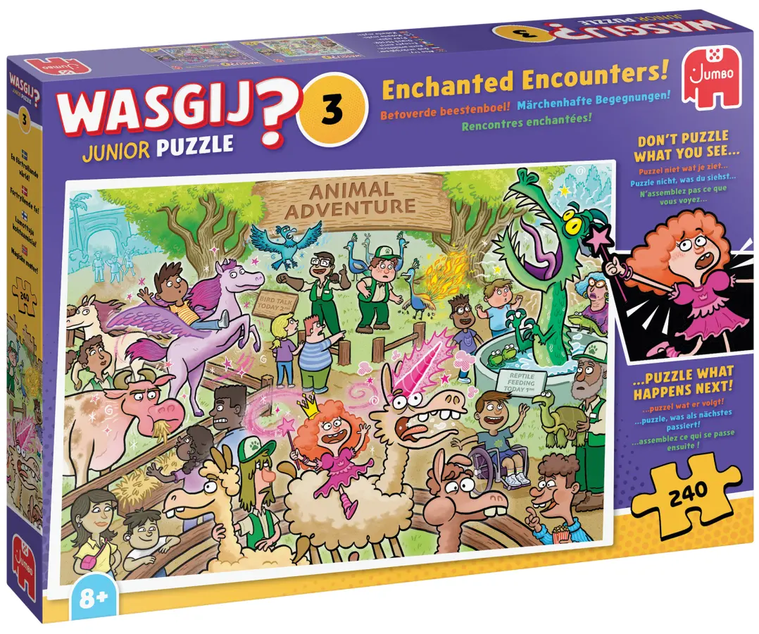 I Wasgij?'s Juniorserie lägger du inte motivet som syns på pusselkartongen, utan pusslar det som händer härnäst i motivet. En extra svår och klurig pusselutmaning!