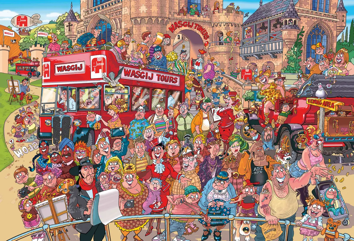 De glada besökarna kan njuta av dagen genom att åka med Wasgij Tours öppna buss och promenera runt "Wasgij Towers". En folkmassa har också samlats framför utsiktsplatsen för att bevittna något magiskt... men vad är det egentligen de får se där på andra sidan räcket? Lägg pusslet och ta reda på svaret!