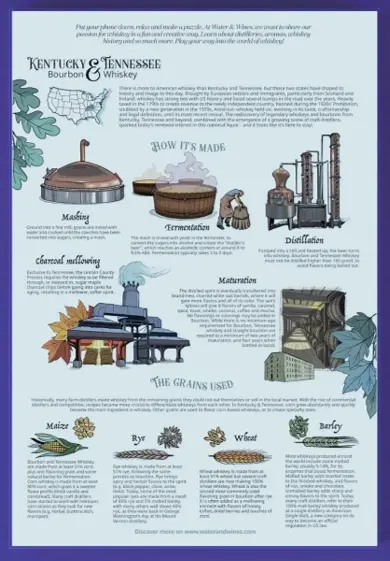 Kliv in i världen av Kentucky och Tennessee bourbon whiskey med ett vackert designat pussel. Medan du pusslar ihop kartan tas du med på en resa genom USA:s historia och får möjlighet att upptäck de lokala destillerierna i Kentycky och Tennesee. Varje pusselbit avslöjar historien om det gyllene elixiret och tar dig till hjärtat av sydstatskulturen.