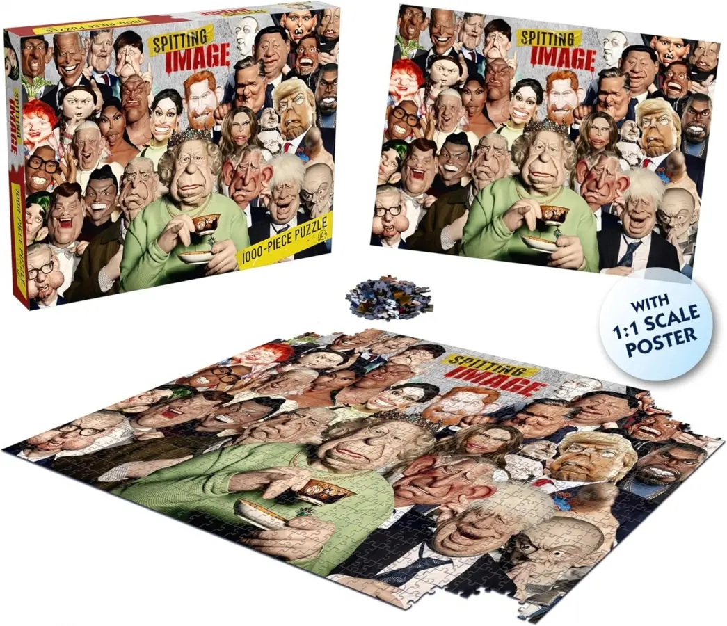 Fördjupa dig i Spitting Image-världen med detta skandalöst detaljerade pussel! Sätt ihop ett kollage av dockor från BritBox Spitting Image humorserie. Här finns karikatyrer av världsberömda människor i dockformat som exempelvis Donald Trump, Ed Sheeran och Billie Eilish.