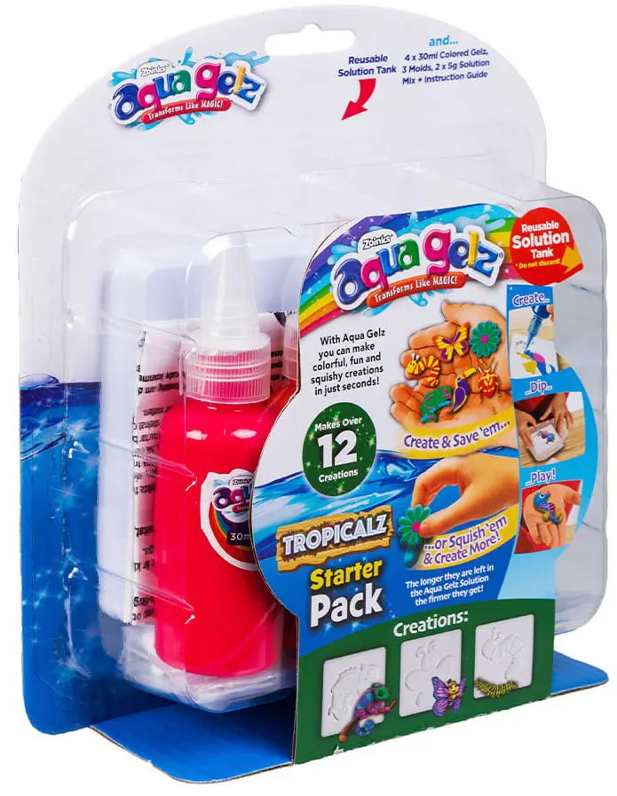 Aqua Gelz är magiskt pyssel med färggel som man kan göra roliga, färgglada, mjuka 3D-figurer av!
